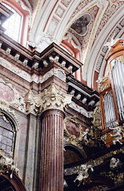 Jako zwieńczenie stycznia, i towarzyszących mi o tej porze roku, klimatów barokowych, zaplanowałam wycieczkę do najpiękniejszej poznańskiej barokowej świątyni, i jednej z większych i piękniejszych barokowych świątyń w Polsce, czyli bazyliki kolegiackiej w poznaniu- tzw. fary poznańskiej. Bywałam tam już niekiedy, ale zawsze w pośpiechu. Teraz wreszcie miałam czas, by dokładnie przyjrzeć się architekturze, rzeźbom, zdobieniom... Wchodząc tam liczcie się z faktem, iż nie oderwiecie wzroku od pięknego, bogato zdobionego sklepienia, co dla baroku jest typowe. Mogłabym patrzeć, patrzeć, i patrzeć, i nie jeść, nie pić, tylko cieszyć oczy tymi majestatycznymi dziełami. W niedalekiej przyszłości zamierzam zwiedzić, już z przewodnikiem, podziemie i koniecznie organy, których nigdy nie widziałam z bliska, a bardzo jestem ciekawa, ponieważ to zabytek z 1876 roku, niezwykle okazały, zresztą musicie zobaczyć to na własne oczy, a póki co, pozostawiam wam moje nieudolne kadry, poczynione trzęsącą się ze wzruszenia ręką. Tak, działają na mnie takie miejsca, i to mocno.